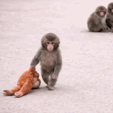 What followed surprised many observers. The tiny macaque did not treat the doll as a mere plaything — he formed a bond with it. Footage shared by the zoo shows him hugging the stuffed toy while sleeping and even carrying it on his back, mimicking how infant macaques cling to their mothers. The doll became more than comfort; it became a substitute anchor in a world he was still learning to understand.