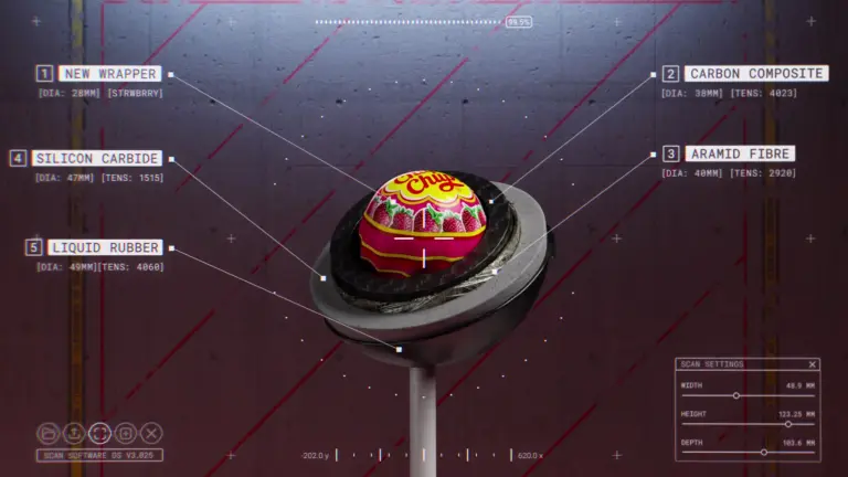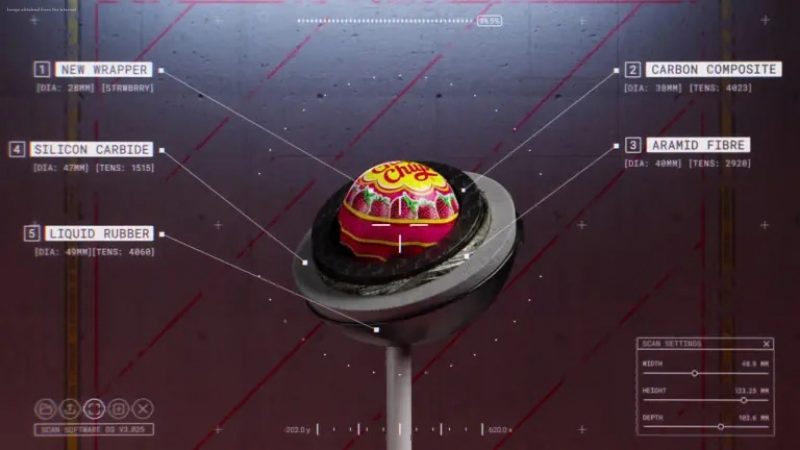 In the advertisement, the brand exaggerates the problem by creating a fictional “impossible” version of the lollipop. The candy is portrayed as being encased in a carbon-fibre core, wrapped with the same material used in bulletproof vests, coated with silicon carbide, and compressed using a hydraulic press to make it nearly impossible to open using fire, blades or physical force.