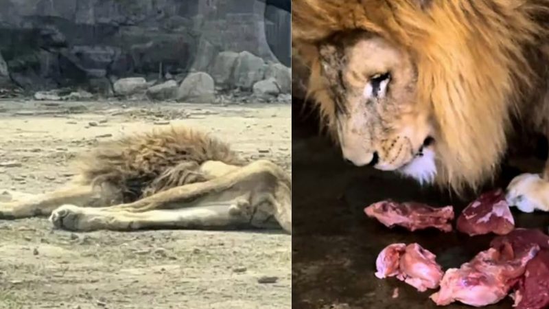 According to the zoo, the lion’s mate died of old age, after which Da Mao reportedly experienced a prolonged period of distress and stopped eating for over 40 days, surviving only on water and gradually losing significant weight.