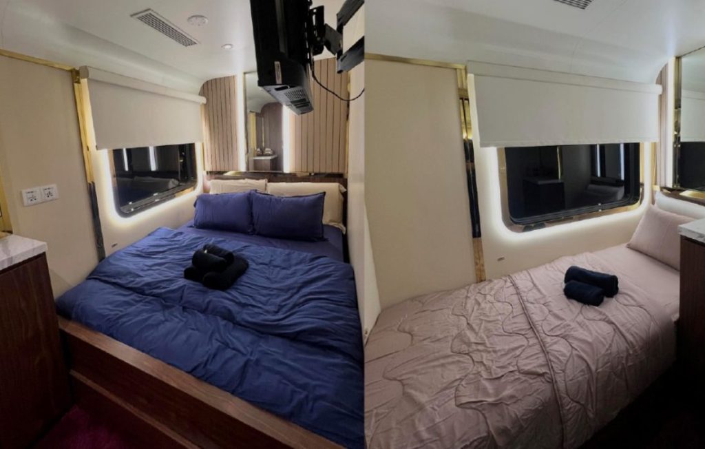 The coach, part of KTM’s special charter service, was showcased in a post on Threads by user @ziafmihar, featuring images of a modern, hotel-style interior with three rooms, two bathrooms, and a dining area. The post clarified that the coach is not available on regular train services and requires advance booking.