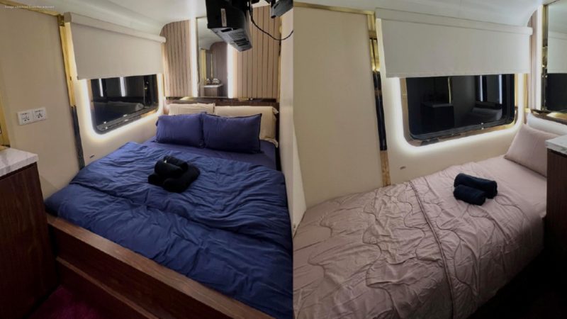 The coach, part of KTM’s special charter service, was showcased in a post on Threads by user @ziafmihar, featuring images of a modern, hotel-style interior with three rooms, two bathrooms, and a dining area. The post clarified that the coach is not available on regular train services and requires advance booking.