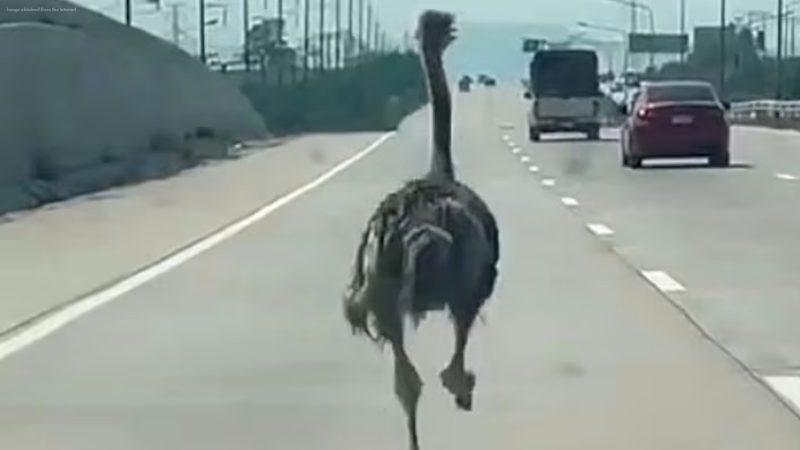 Chairat, 33, later told AFP he initially thought there had been an accident when he encountered a traffic slowdown, before realising a live ostrich was running in the middle lane. He said the bird appeared frightened and disoriented as it moved through traffic.