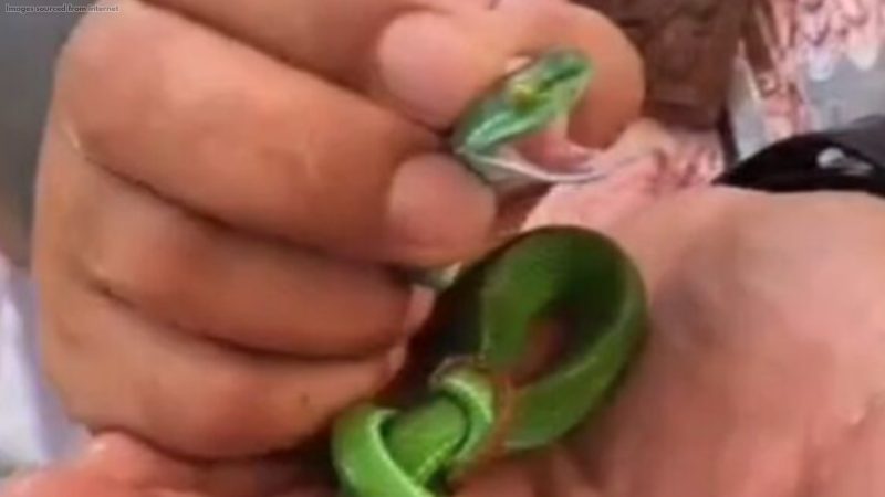 Chaos erupted when volunteers, who were in the process of cleaning skeletal remains, witnessed a venomous green pit viper slithering out from inside one of the skulls. Those nearby screamed in fear and quickly retreated from the area.