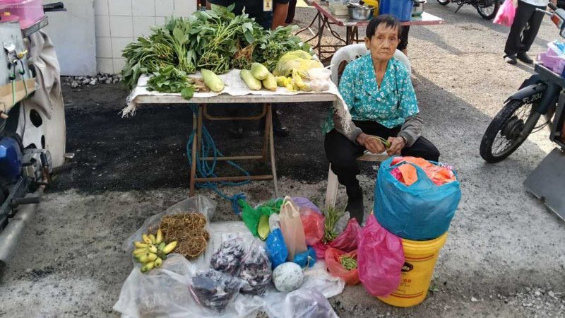 The elderly woman was selling small quantities of vegetables she had grown herself at the Ayer Laba market when enforcement officers issued her the fine. She was reportedly not allowed to leave until the penalty was settled.