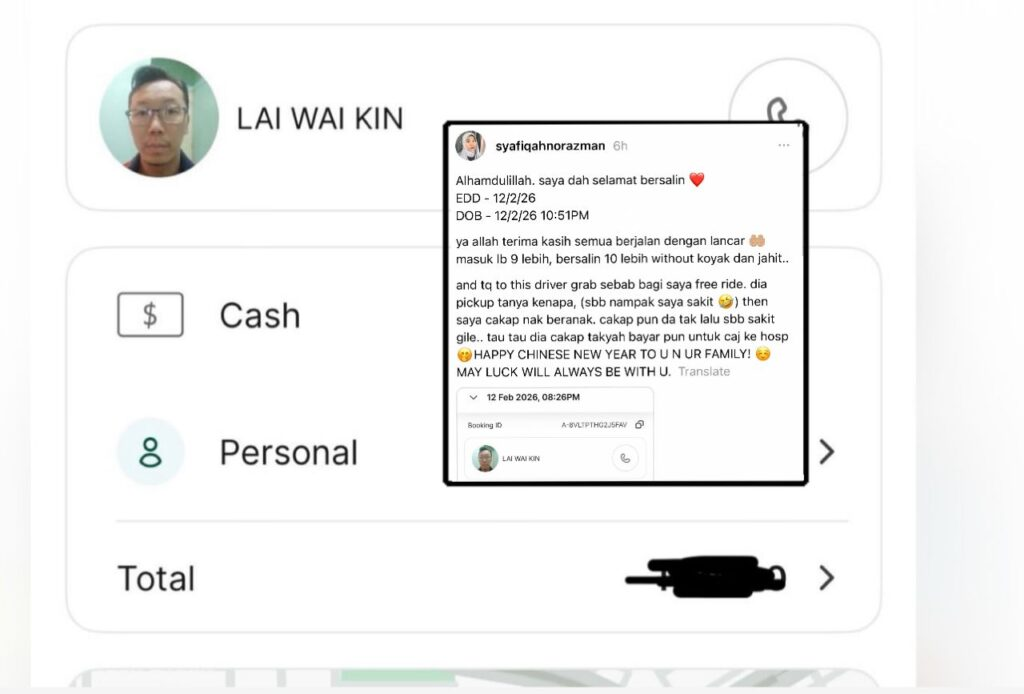 “Congratulations on your confinement! Kudos to the Grab driver for selflessly helping a pregnant mother. Hopefully, Grab rewards him with a red packet this Chinese New Year,” added Syuhada.