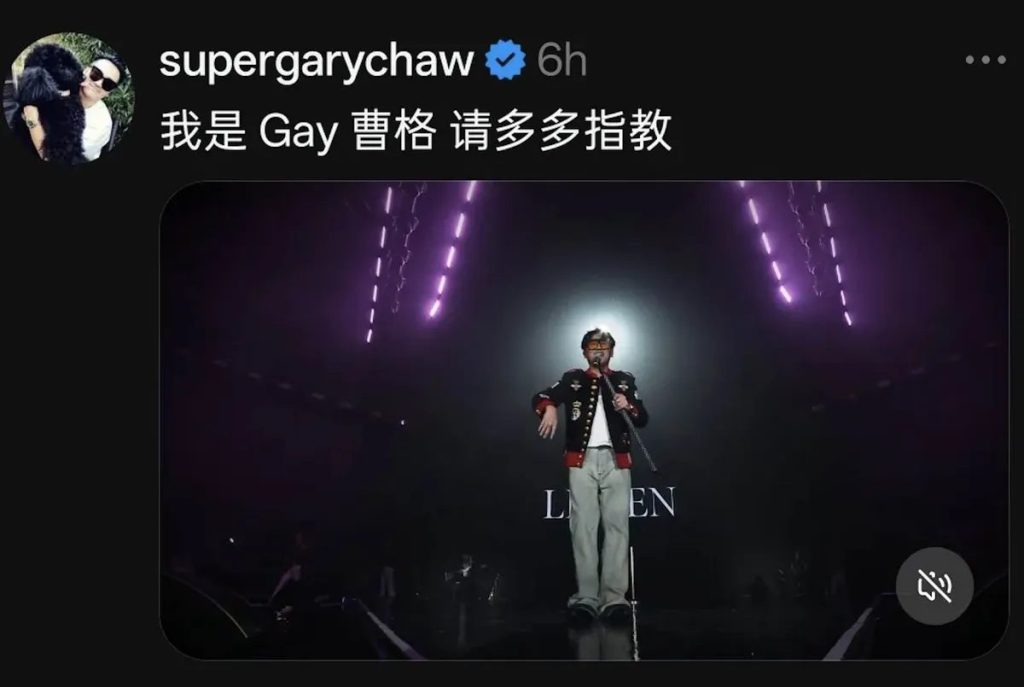 In the post, he mistakenly wrote “I am Gay Chaw” instead of “Gary Chaw,” after missing the letter “R” in his English name. The slip-up sparked widespread reactions online, with many fans joking about the unintended wording.