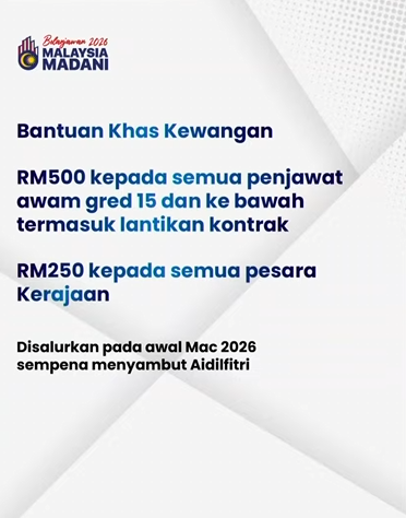 The aid will be distributed in early March 2026 in conjunction with the Aidilfitri celebrations.