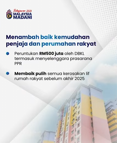 In addition, the government has committed to repair all damaged lifts in public housing units by the end of 2025, ensuring safer and more comfortable living conditions for residents. This initiative reflects the government’s ongoing mission to improve the quality of life and urban well-being under the Malaysia MADANI framework.