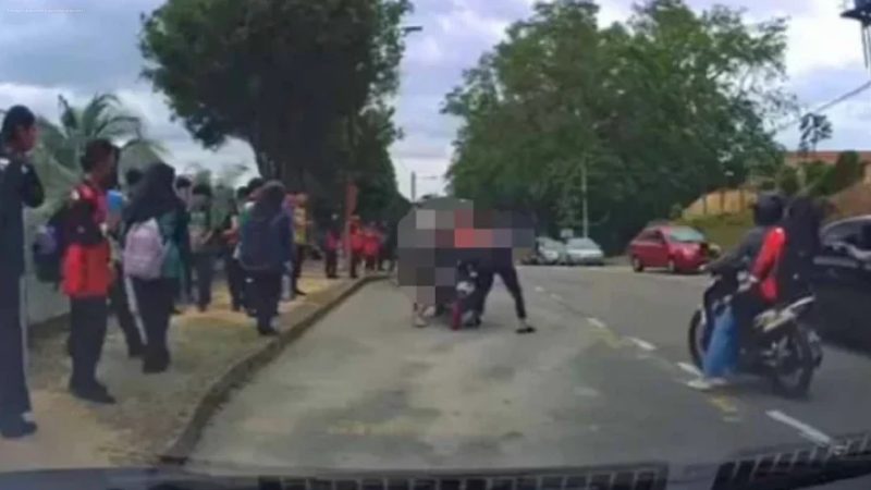 A 17-year-old student was caught on dashcam assaulting another 17-year-old student on a motorcycle outside a secondary school in Larkin, Johor, earlier this week. The video of the incident has circulated widely on social media.