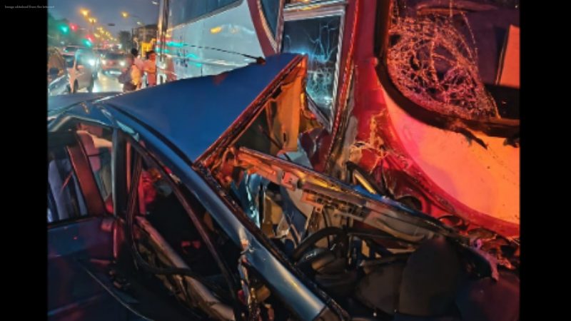 The incident involved a car and a bus, which was unoccupied at the time of the crash.