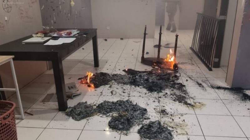 Photos provided by the department showed the burnt table positioned beside a larger table that appeared to have been converted into a makeshift altar. Several pentagrams were also found drawn on the floor and on a nearby wall, suggesting possible occult activity.