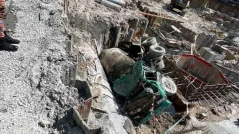Cement Truck Overturns At Penang Construction Site, Driver Killed After Being Trapped