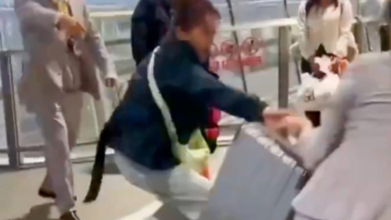 Tensions escalated when the woman allegedly began shouting at staff while trying to force her luggage through. A female airport employee was seen struggling with her over a suitcase, and both reportedly fell to the ground during the altercation.