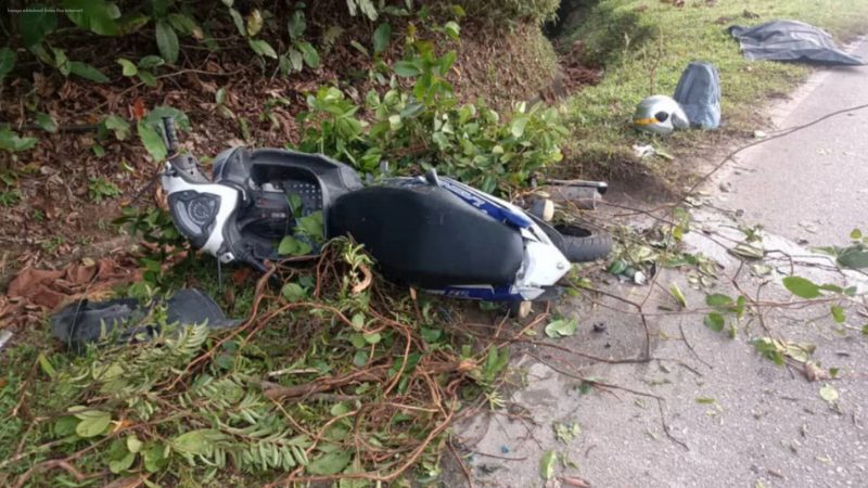 “At around 6:05 a.m., we received a report of a fatal accident involving these two vehicles. The motorcycle, traveling from Kota Tinggi towards Sungai Rengit to go to work, skidded after hitting a fallen tree branch on the road. The rider was thrown onto the road and subsequently hit by a Perodua Viva driven by a local man who could not avoid him,” he said in a statement today.