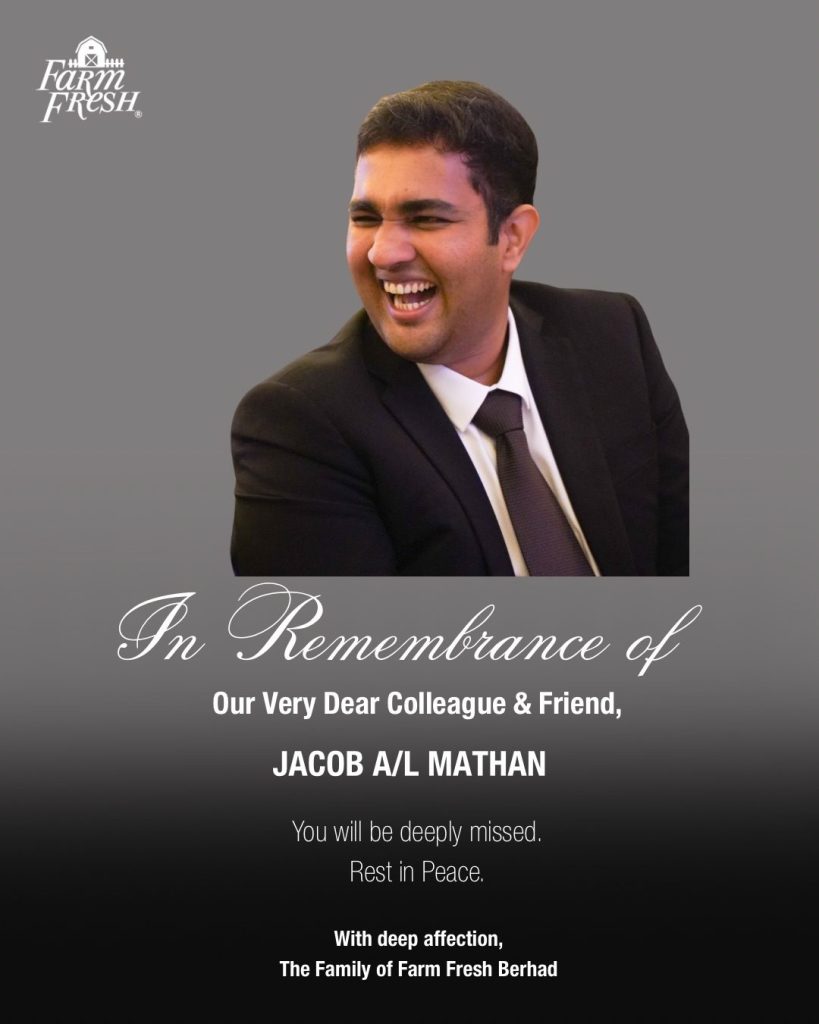 Farm Fresh urged employees and stakeholders to honour Jacob’s memory by continuing to uphold the standards and values he championed within the company.
