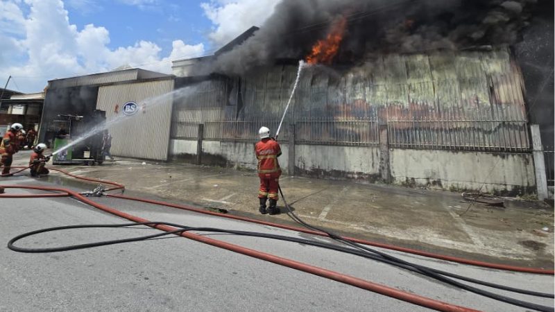 According to Bomba, the fire originated from a container that had been converted into temporary workers’ quarters and quickly spread to the rear structure of a nearby factory. The affected structure has suffered approximately 60 per cent damage. Firefighters are currently working to create firebreaks to prevent the flames from spreading further.