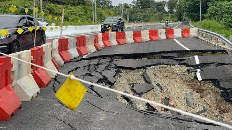 The road, which previously experienced a sinkhole in November last year causing lane closures, had been repaired by the concessionaire, but heavy rainfall since the beginning of this month is believed to have triggered another collapse.