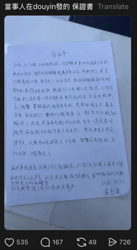 Handwritten “Guarantee Letter” From Passenger In Viral Flight Incident Sparks Online Debate