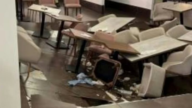 Images shared by local media showed severe structural damage, with the restaurant floor caved in and debris scattered across the affected area.