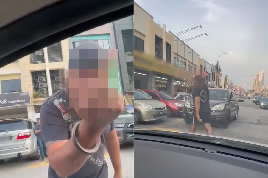 A man has sparked public outrage after being caught on video flashing his middle finger during a heated parking dispute in Kepong. The incident, which took place at Jalan Metro Perdana Barat 2, shows the man standing beside another vehicle and making the obscene gesture directly at the driver before calmly returning to his own car, which was reportedly double parked—believed to be the cause of the altercation.