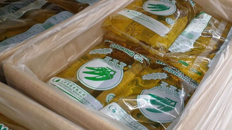 During the raid, authorities seized 288 one-kilogram packets of cooking oil, with the total value of the confiscated items estimated at RM720 for further investigation.