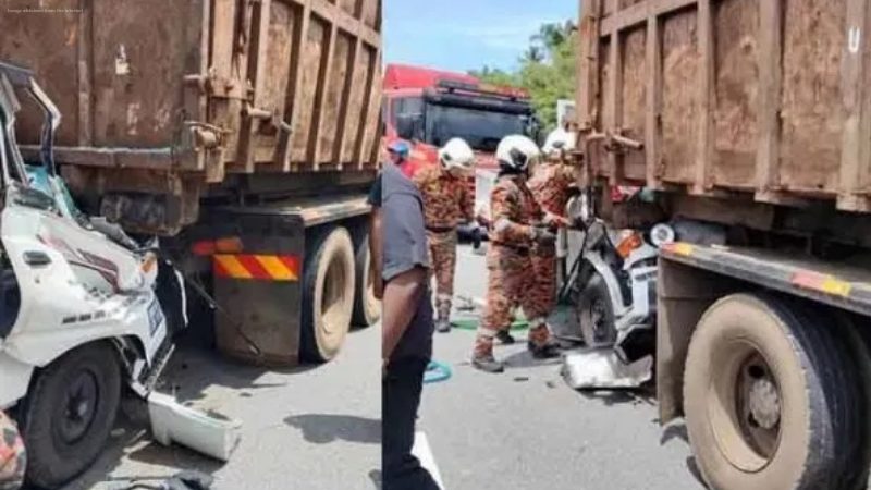 “Upon receiving the emergency call, rescue teams from Perai and Batu Ferringhi fire stations were immediately dispatched to the scene. When we arrived, we found that a one-ton lorry had collided with the back of a garbage truck, with the driver pinned inside. Our team had to use special rescue tools to free him,” he explained.
