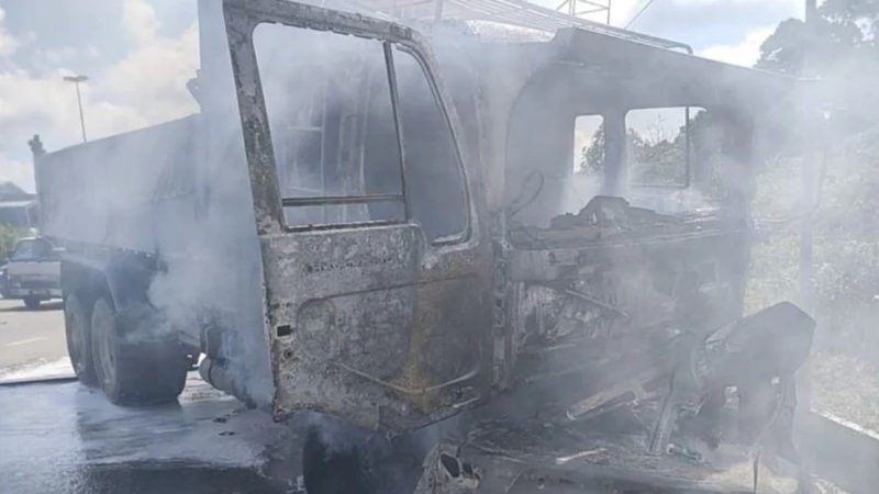 Upon arrival, firefighters found the front section of the lorry completely burned, while the car was totally destroyed by fire. The blaze had already fully engulfed both vehicles.