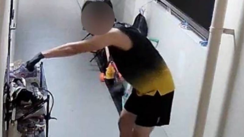 A man was caught on CCTV allegedly stealing multiple pairs of shoes from outside a residential unit at a Woodlands Housing and Development Board (HDB) block before throwing them down a rubbish chute.