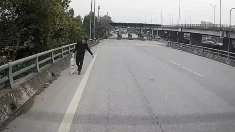 Footage revealed that the bag had fallen from a pickup truck at the highway entrance on the same day it was found, allowing authorities to identify the owner.