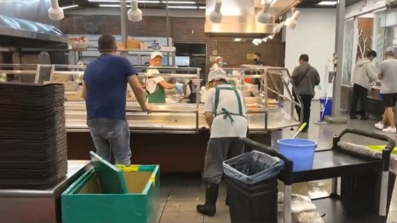 Video and eyewitnesses showed the man wildly sweeping dishes off the counters, throwing entire plates at the cashier, and hurling utensils and stacked trays into the kitchen. Staff were too frightened to intervene as the man even stepped inside the kitchen.