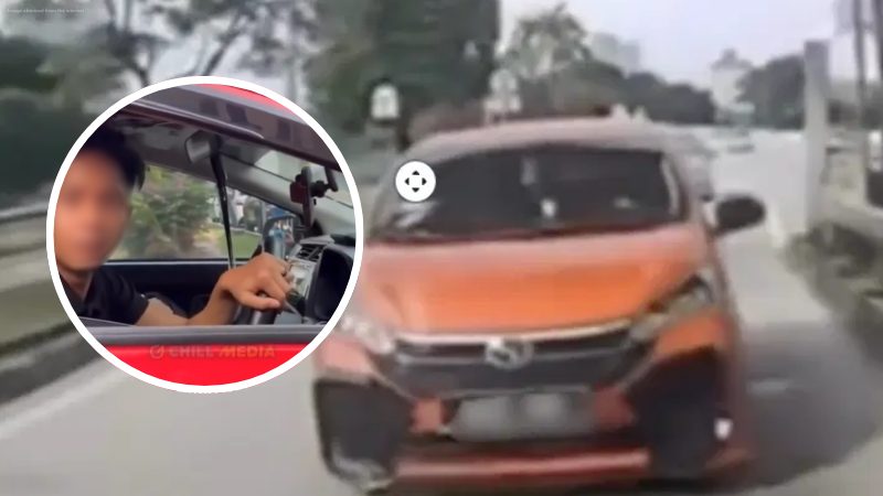 A red Perodua Myvi driver has gone viral after allegedly attempting to evade toll payment by tailgating another vehicle, only to be confronted moments later by the driver who recorded the incident on dashcam.