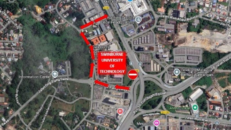 KUCHING – Motorists are advised that a section of Jalan Simpang Tiga, in front of Swinburne University of Technology Kuching, will be temporarily closed for four nights from 19 to 22 November to facilitate water pipe relocation works.