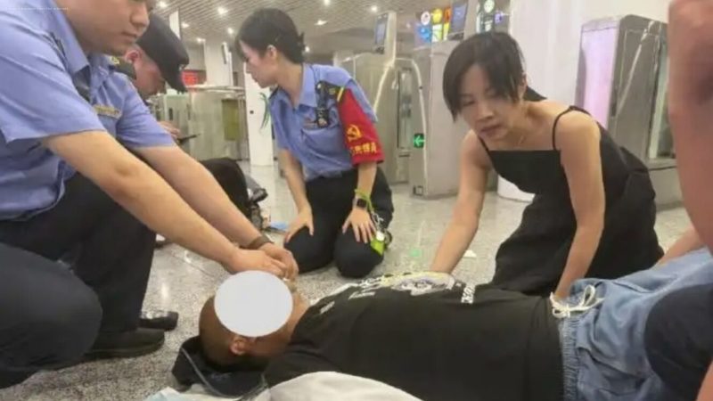 On August 12, a passenger suddenly collapsed and began convulsing at Nanjing South Railway Station. Amid the chaos, a woman in a black spaghetti-strap dress sprinted to the scene after hearing the station broadcast requesting medical assistance. She even bit off her artificial nail to safely clear an obstruction from the patient’s mouth, a heroic act captured by bystanders and security cameras. The video quickly went viral online, with netizens praising her as “beautiful and kind-hearted” and a “real-life angel.”