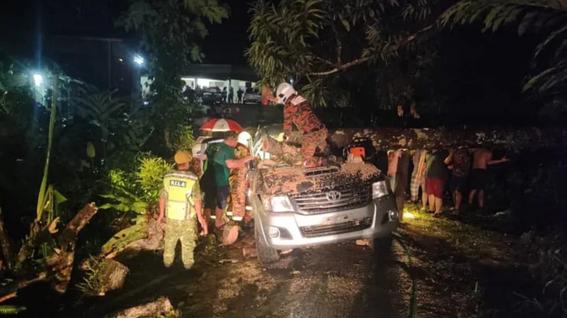 In a separate incident in Kanowit, Bomba received a distress call at 9.03pm regarding a tree that had fallen onto a four-wheel drive (4WD) vehicle, injuring three occupants—a 33-year-old woman, a 14-year-old boy, and an eight-year-old girl.
