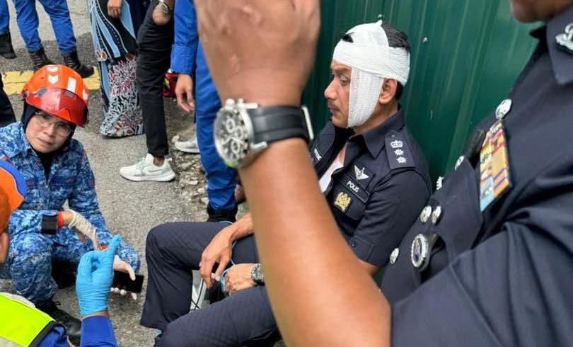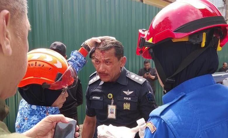 Dang Wangi District Police Chief, Assistant Commissioner Sulizmie Affendy Sulaiman, was injured while overseeing the situation during a building evacuation operation at several homes in Kampung Sungai Baru today.