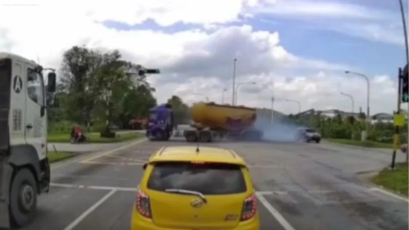 A tanker truck lost control and smashed into a traffic light in a dramatic incident captured on video, quickly circulating across social media platforms.
