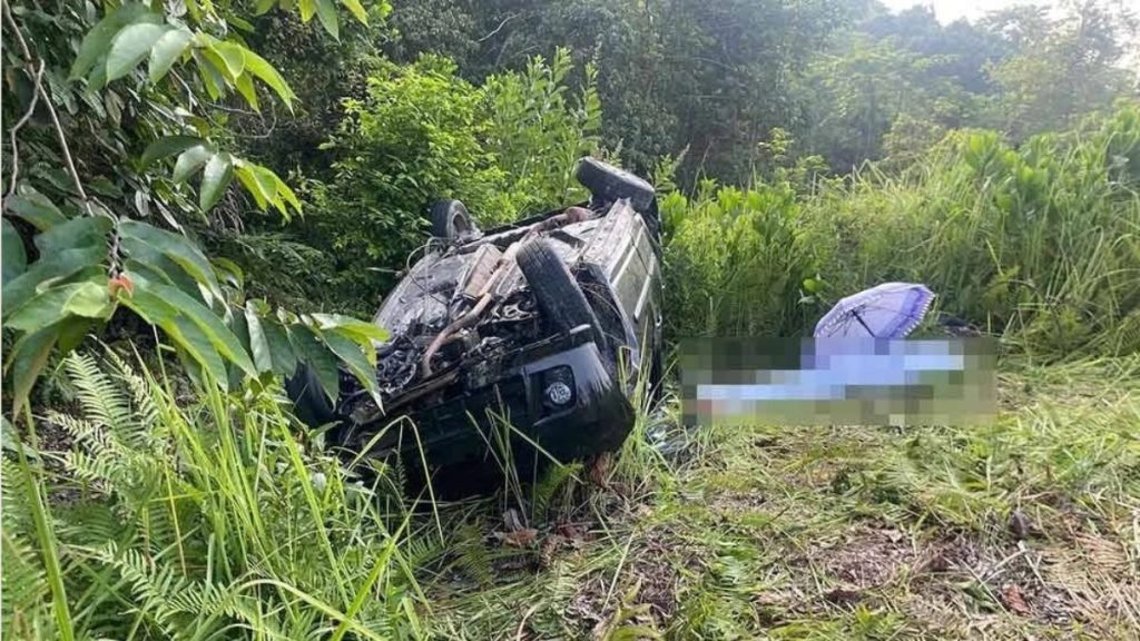 The accident occurred at KM37 of the Central Spine Road, near Kampung Sungai Yeh. Zainah’s car is believed to have gone out of control, veered off the road, crashed into a roadside drain, and overturned into nearby bushes. She died at the scene.