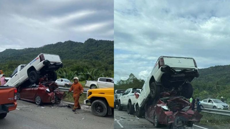 Truck Lands on Car in Shocking 5-Vehicle Pile-Up on Sabah Highway