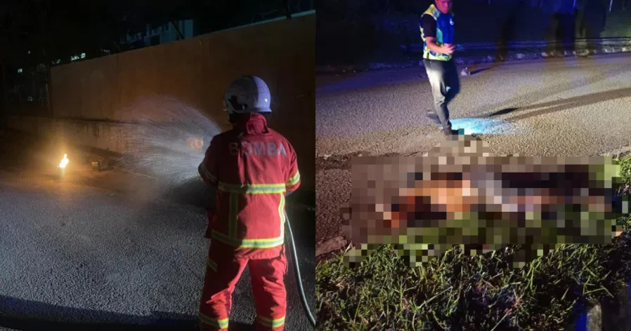 According to Perak Fire and Rescue Department Director Sayani, the department received an emergency call at 11:26 PM reporting a self-immolation case at the scene.