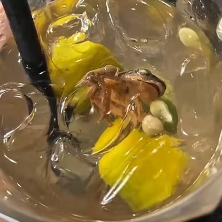 According to the woman, the drink initially seemed normal, and she assumed the floating object was part of the drink. However, as she continued sipping, she began to feel uneasy and used her straw to stir the contents—only to find a dead frog submerged at the bottom of the glass. “Turns out frogs and plums do look alike—I didn’t even notice it,” she said in disbelief.