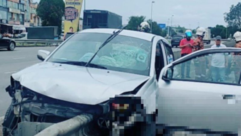 The incident involved a single vehicle, a Proton Saga, which struck a road divider. Three people were in the car at the time of the crash.