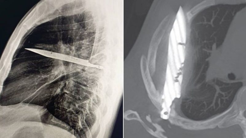 A chest X-ray revealed the shocking truth: a knife was embedded in his chest cavity, having entered near his right shoulder blade while miraculously avoiding all vital organs.
