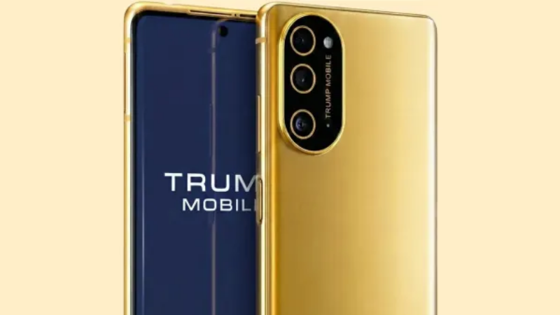 The latest iteration of the device maintains its gold exterior and American flag motif on the rear panel, alongside a “Trump Mobile” logo. The rear camera setup features three lenses, with a slightly unconventional layout, while the device also retains a curved body design and a headphone jack positioned at the top.